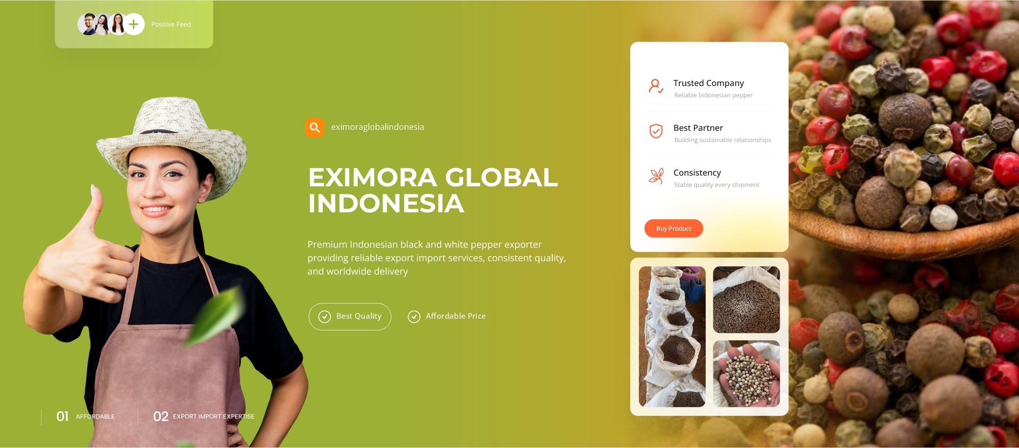 PT Eximora Global Indonesia provides Indonesian pepper (Merica) as its main export commodity for international markets. Our products are sourced from selected regions in Indonesia that are known for producing high quality pepper with strong aroma, consistent flavor, and good shelf stability.